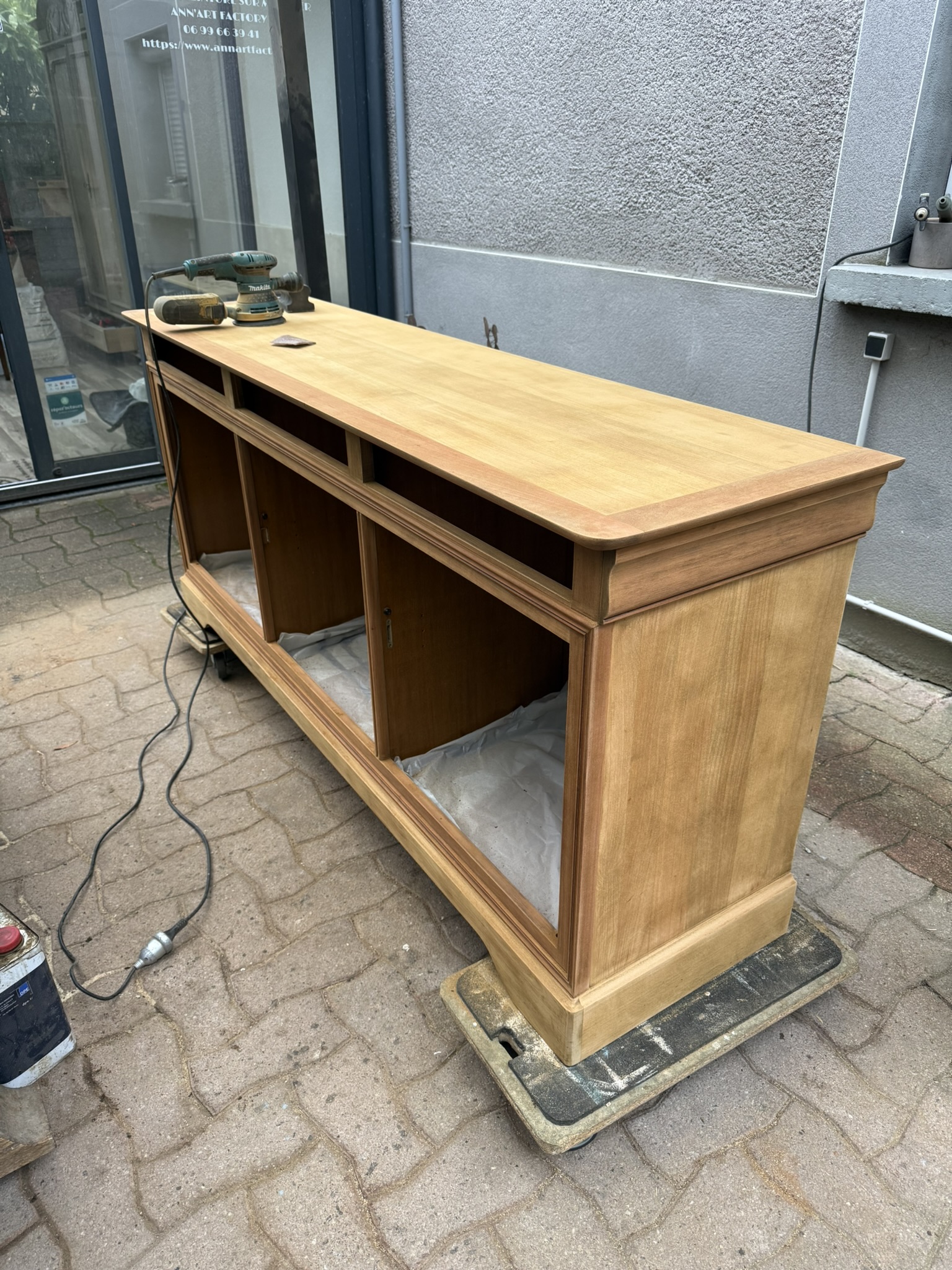 Travail toujours dans les règles de l’art avec décapage, ponçage, préparation minutieuse du support, peinture et/ou patine sur mesure avec finition adaptée.