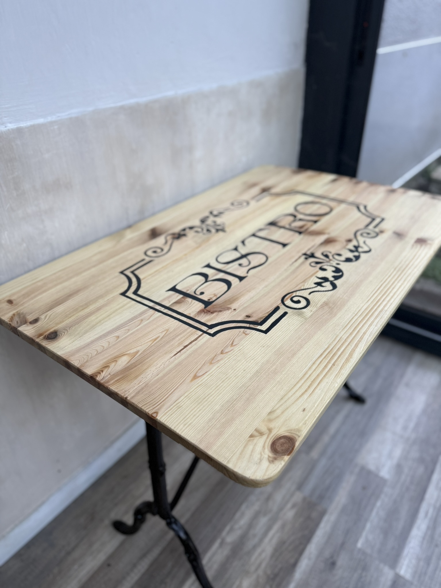 Atelier Ann'Art Factory | Création table de bistrot bois et fonte avec motif peint | Tassin/Lyon